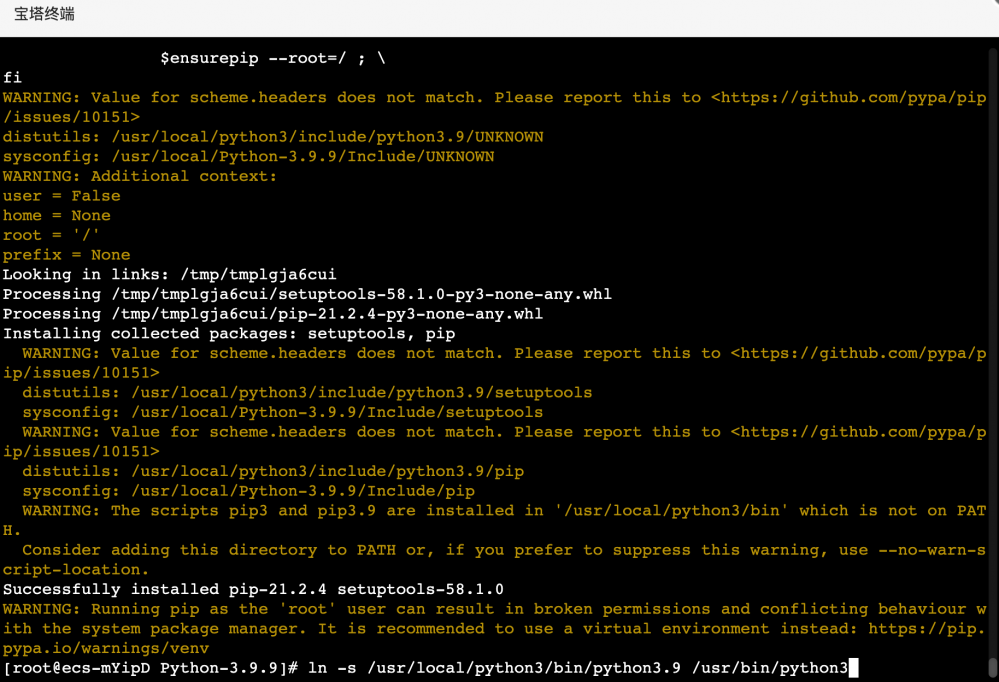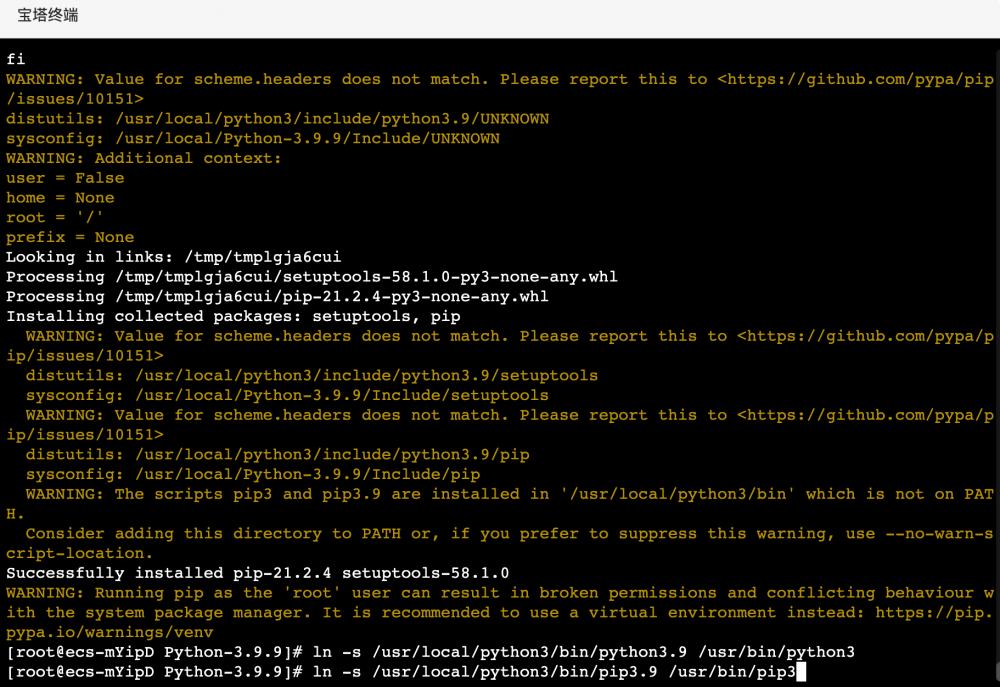 ln -s /usr/local/python3/bin/pip3.9 /usr/bin/pip3