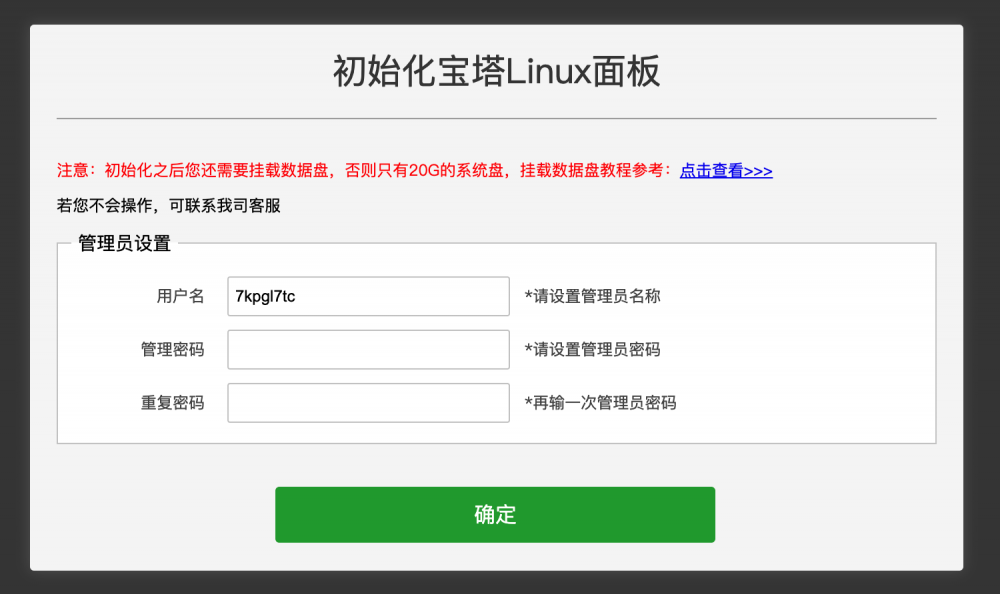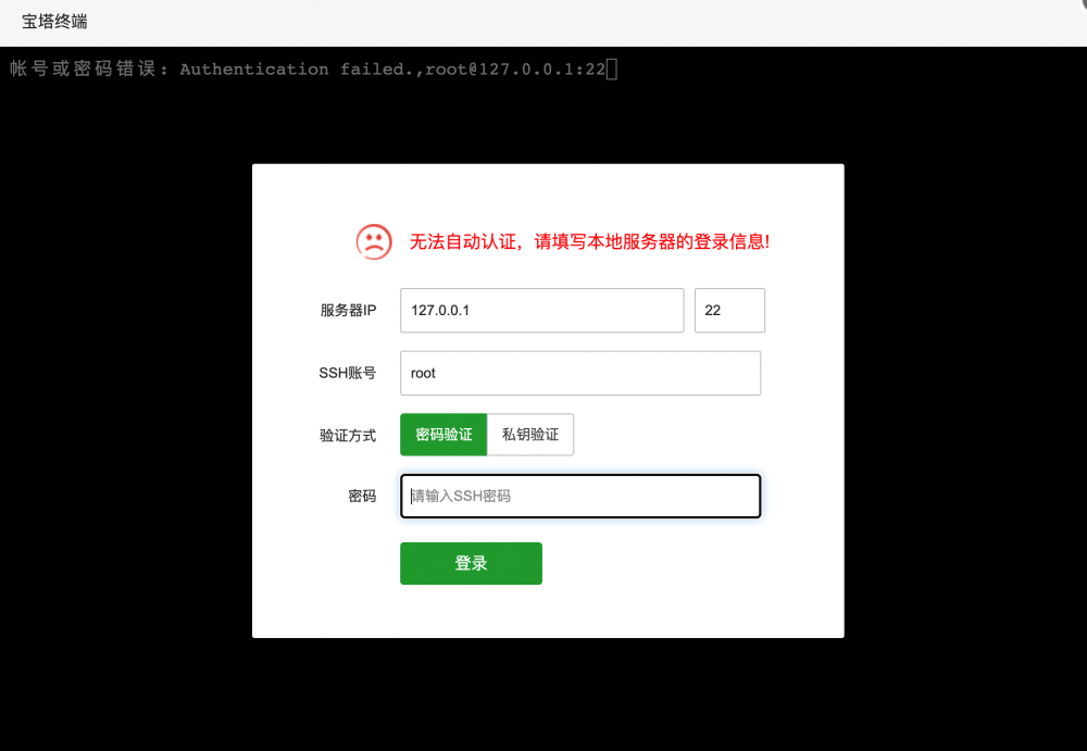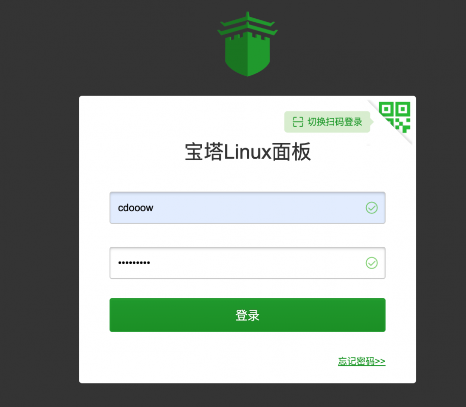 2、使用你剛剛設置的用戶名和密碼,登錄寶塔
