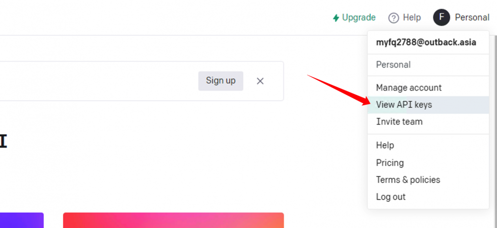 登錄完成后,點擊右上角的頭像,點擊View API Keys