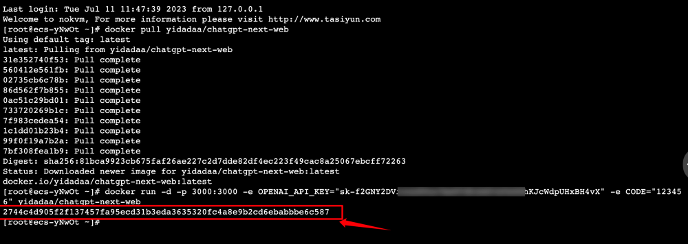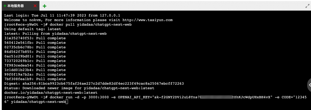 docker run -d -p 3000:3000 -e OPENAI_API_KEY="你的openai-key" yidadaa/chatgpt-next-web
