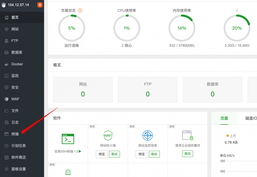 點擊寶塔面板左側的終端