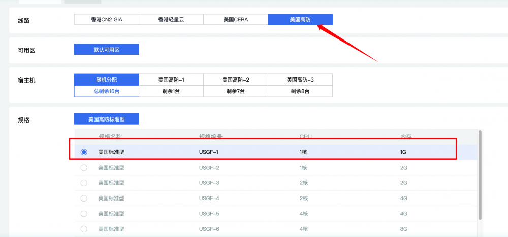 1、當然首先還得是購買一臺云服務器,這里配置就不做要求了,如果只是自用,或者幾個人使用的話,購買最低配置:1核1G就能用了,如果用的人較多的話,可以適當購買更高的配置。另外地區必須選擇藍米云的美國高防云服務器,測試IP非常適合調用ChatGPT的API,因為ChatGPT限制部分國家和地區的IP使用,不要亂買服務器,不然沒法用。