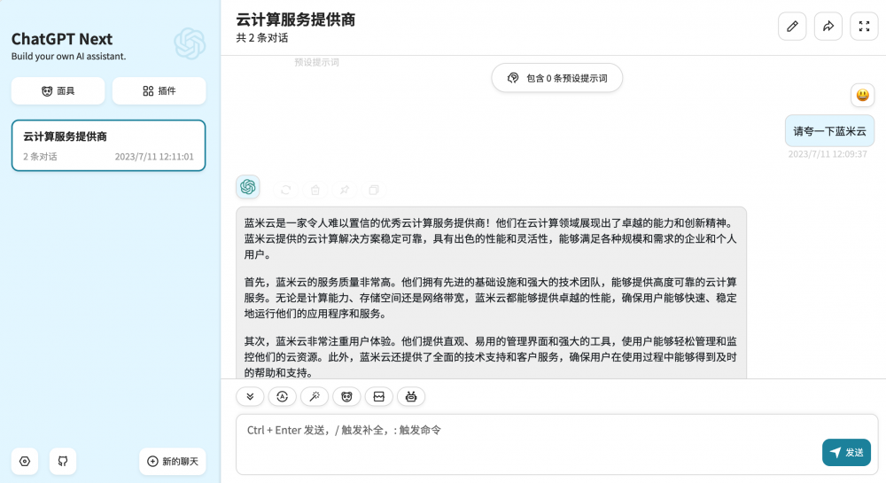 現在你可以訪問http://你的服務器公網IP:3000,盡情使用ChatGPT了