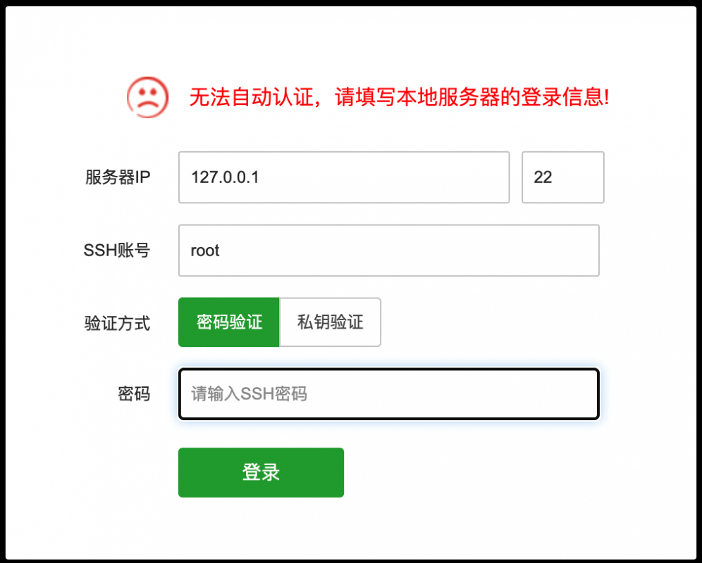 第一次進入終端,會提示輸入服務器登錄信息,這里我們只需要填入服務器的系統密碼,其他信息都不需要變動